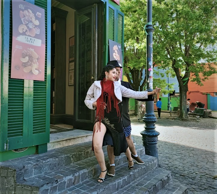 Buenos Aires, que abrazo ! Dès le premier contact, cette ville est incroyablement séduisante. Elle vous prend en main, elle vous guide comme pour un tango. Cette immense métropole de 15 millions d’habitants (deuxième ville d’Amérique latine, 3 millions, intra-muros) s’étend sur 3800 km2 (Paris 105 km2). Elle se divise en une multitude de quartiers (barrios). Ils se définissent comme sûrs, pas sûrs, « à éviter », les tops, les branchés, les « craignos ». Rien que pour les plus centraux, ce sont évidemment les plus bourgeois, les plus bohêmes ou les plus historiques et surtout les plus touristiques : Balvanera, San Telmo, Recoleta, Palermo, San Nicolas, Montserrat, Retiro ou Puerto Madero, le nouveau quartier d’affaire. Et puis, il y a la Boca, à une demi-heure (à pied) de Plaza Dorrego (San Telmo). On change de dimension : extravagance, folie, insécurité. C’est le Buenos Aires libéré ! La Boca, quartier ouvrier (d’origine italienne) est située à l’extrême sud-est de la ville. Il est connu dans le monde entier pour son stade de foot le plus mythique de la planète (La Bombonera)*, son univers festif, artistique si bien retranscrit dans les toiles du grand peintre argentin (enfant de La Boca), Benito Quinquela Martin (1890-1977). Ses rues sont une explosion de couleurs. C’est ici où peintures et personnages viennent s’exhiber sur les façades en tôle des maisons ; où les porches servent de minuscules milongas ; où Caminito (rue la plus connue de La Boca) n’est autre que le titre d’une chanson de Tango du célèbre Carlos Gardel.