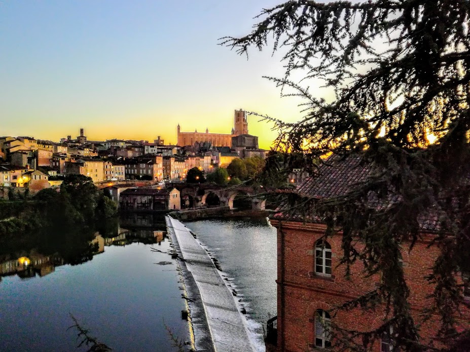 One must imagine this Episcopal City as an exceptional collection of listed and remarkably preserved buildings. It is structured around its monumental cathedral expressing a unique southern Gothic style, complemented in the 15th and 16th centuries by an exceptional interior decoration (paintings, choir and statuary). Then the Episcopal Fortress Palace (Berbie Palace). It was erected in the 13th century. It is now home to the Toulouse-Lautrec Museum. All this is presented in a perfect visual coherence due to the use of the fairground brick (brick of Roman tradition, large and flat). Then comes the Church of St. Salvi and its cloister*, the Old Bridge and finally the banks of the Tarn between the Old Bridge and the railway bridge. What a sight!