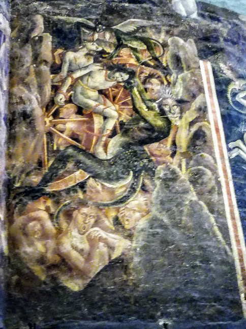 This Last Judgment painted at the end of the 15th century and located below the great organ of St. Cecilia’s Cathedral is one of the largest pictorial compositions in the world. It is 18 m long, 10 meters wide. Executed with a thick paint made from egg yolk, grease, crushed powder and glue, this monumental work with very raw realism remains in excellent condition. The central part was destroyed in the 17th century. It represented Christ the Judge and the Archangel St. Michael, weigher of souls. In the middle register, angels sound the trumpet announcing the Resurrection and Judgment. The dead emerge from their tomb. They come out of the ground and appear, naked waiting for their fate. Open on their chests, their life books on which are inscribed their good and bad deeds. To the right of Christ, the elect advance in procession to go to paradise. To his left, against a backdrop of tormented sky, the crowd of the damned destined for hell. It occupies the entire lower register organized into seven compartments, as much as capital sins. Thus are grouped the sins committed by the damned: the proud, the lazy, the greedy, the envious, the angry and the luxurious. And with each sin, a punishment: the proud are attached to wheels, the envious immersed in frozen rivers, or the gluttons invited to an eternal banquet, during which they are without respite filled with toads and watered with stinking river water. It’s a scary sight. It is linked to the omnipresence of death that dominate this late Middle Ages occupied by wars, famines and epidemics.