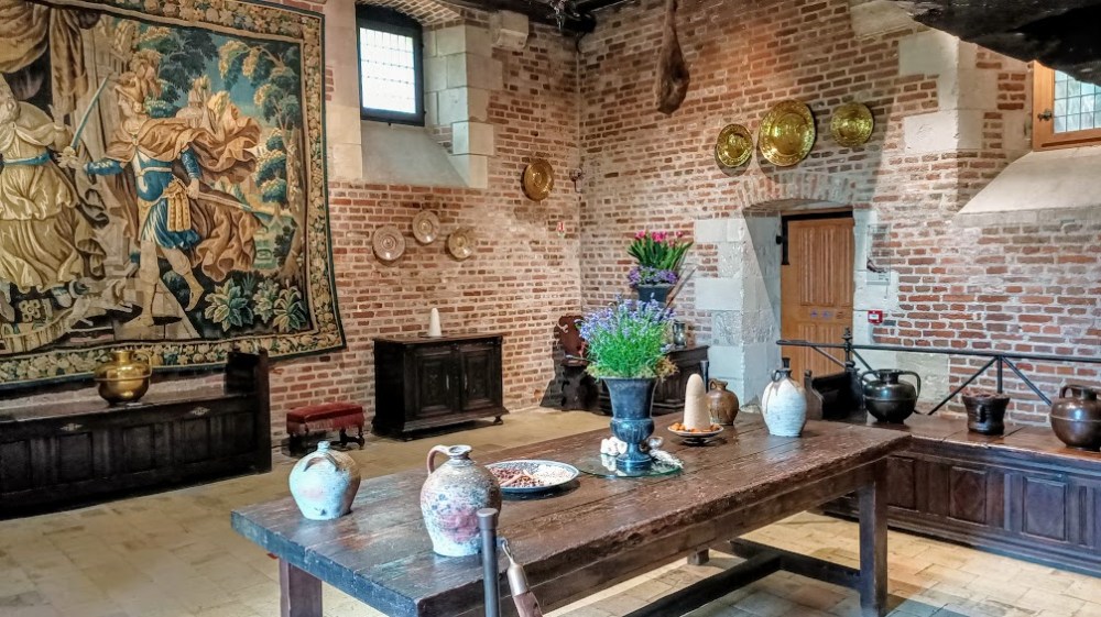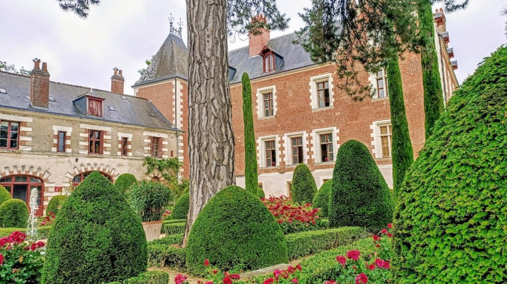 A mansion that became a royal residence. In the Middle Ages, the estate belonged to the Amboise family who erected a first construction on the site of the current residence. The estate was then ceded to the nuns of the female monastery under the Cistercian Order of Moncé (in Limeray near Amboise). This manor of Cloux*, of pink bricks and white stones, was built in 1477 for Étienne Le Loup, butler of Louis XI (in fact an old marmiton, a “tournebroche” with a hanging tongue that had been ennobled by the king). The house has a perimeter wall, a drawbridge, towers attached to a walkway and a dovecote of 1000 boulins (or nest boxes) sign of great wealth (still visible in the park).