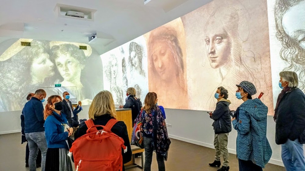 In this immersive show, the verses of the poet Charles Baudelaire (Les Phares) resonate: Léonard de Vinci, miroir profond et sombre,/Où des anges charmants, avec un doux souris/Tout chargé de mystère, apparaissent à l’ombre/Des glaciers et des pins qui ferment leur pays. Les Fleurs du mal (Photo FC)