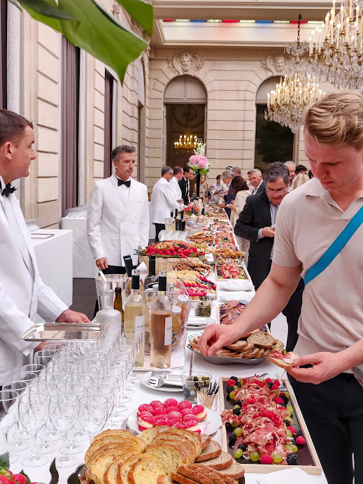L’Elysée est à la hauteur de sa réputation. Des buffets installés dans les jardins. Un petit air d’abondance et de raffinement. Tout ici vient du Marché international de Rungis. Son grand patron est là, Stéphane Layani, ami proche du couple présidentiel.