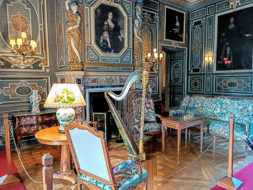 Regardez bien : au premier étage de la façade sur cour, douze niches ovales rythment le parfait ordonnancement des fenêtres ; elles abritent les bustes de douze empereurs romains. Qui ne serait impressionné, en pénétrant dans ce château, par le monumental escalier* d’honneur à rampe droite, bordé de balustrades ? Son décor, de style auriculaire, est l’un des rares exemples en France de cette manifestation ornementale née aux Pays-Bas dans la première moitié du XVIIe siècle. Mais la pièce la plus impressionnante est sans doute la chambre du roi, d’une exceptionnelle harmonie de tonalité bleue, or et rouge, les couleurs des Hurault. Le plafond à caissons, peint par Monier, illustre l’histoire de Persée et d’Andromède. Les murs sont tendus de tapisseries des Gobelins datant de 1640.