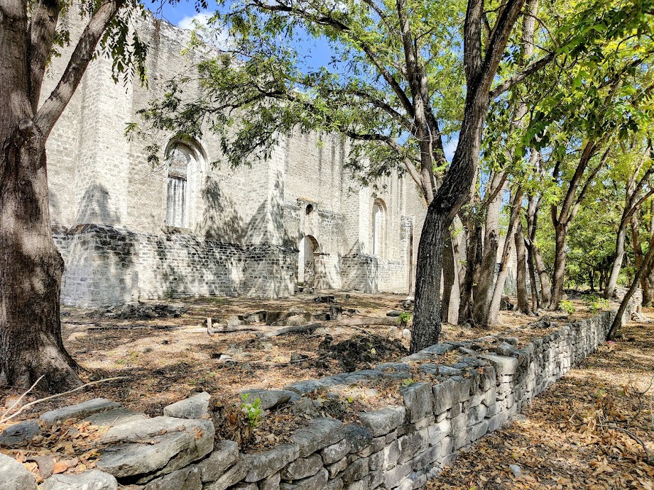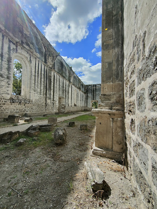 Una parte de la torre del campanario, agrietada, se alza sobre el antiguo convento, aferrándose de manera frágil al transepto norte que aún persiste.Una escalera de piedra asciende hasta la cima de la nave. ¡No entren en pánico! Perturbarán a un centenar de murciélagos colgados de las paredes. Afortunadamente para su tranquilidad, hay muy pocos visitantes. ¡Allá arriba, el vértigo está garantizado! Sí, un verdadero camino de cresta suspendido sobre el vacío. El paso es estrecho y peligroso, pero ¡qué vista!