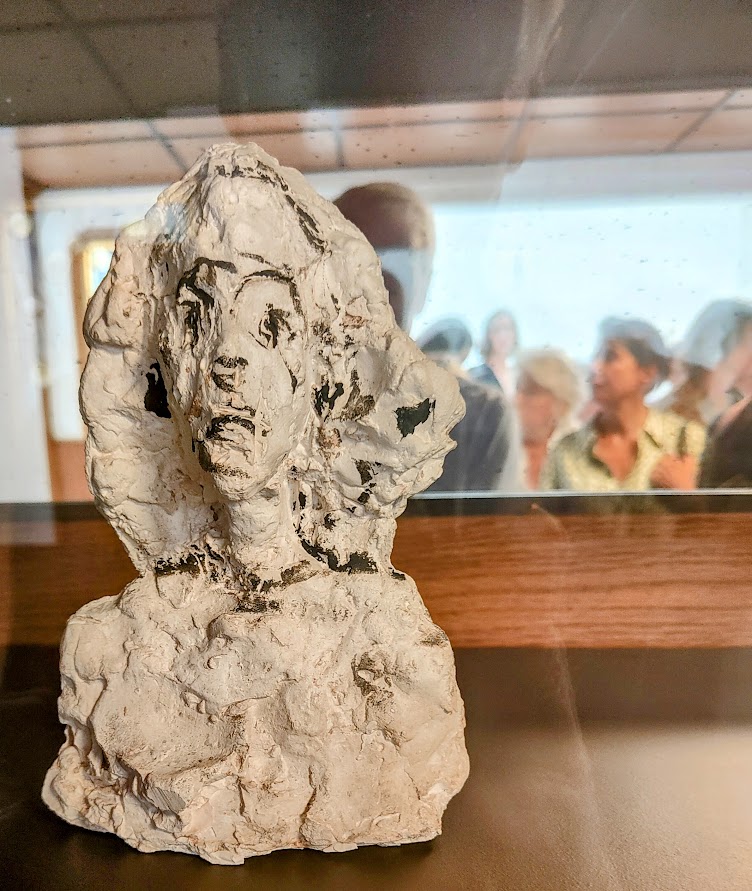 Entre philosophie, littérature et sculpture, l’exposition reflète l’art de Giacometti face aux grandes questions posées par Beauvoir et Sartre. On y voit ses créations artistiques majeures comme L’Homme qui chavire (1950), La Main (1947) ainsi que des archives inédites, et une reconstitution de la « Chambre à soi» de Simone de Beauvoir au 11 bis rue Schoelcher, son espace de vie et d’écriture. Plus une touche bien plus contemporaine puisque l’artiste Agnès Geoffray vient grâce à une série de photographies donner corps au vertige, intitulée « La Femme qui chavire».