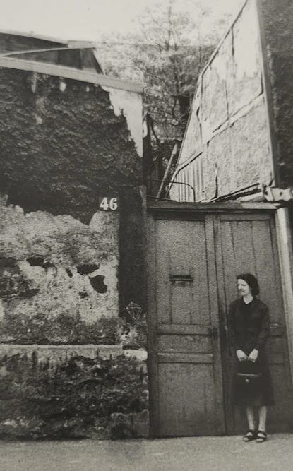 Lieu de l’atelier d’Alberto Giacometti, 46, rue Hippolyte Maindron. Pès de 70 ans séparent ces deux photos. On voit à gauche, Annette Giacometti, sa femme devant l’entrée du 46, rue Hippolyte-Maindron en 1956. Photo Isaku Yanaihara (archives Fondation Giacometti). A droite Photo © François Collombet