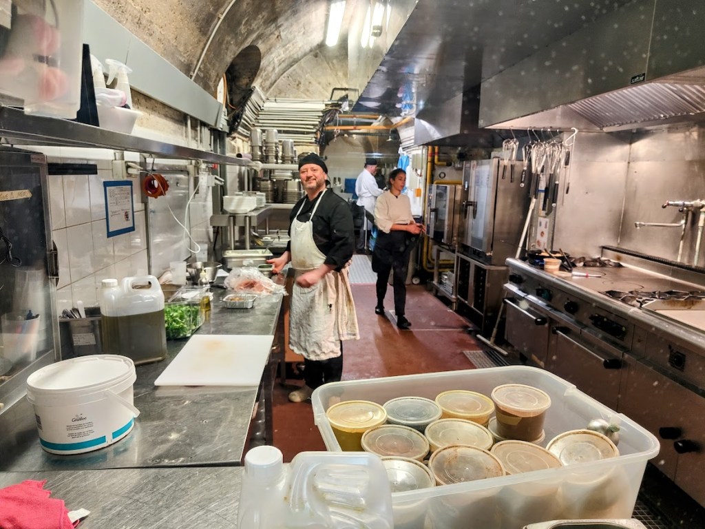 Victoire va alors trouver un job de cheffe chez un traiteur. Il fournit le foyer. Très vite, et à son plus grand bonheur, la transaction se fait (depuis novembre 2024) avec le restaurant La Traversée. Elle cuisinera directement à la Madeleine avec son bras droit Sofiane (en vacances aujourd’hui au Bengladesh). Ils sont tous les deux salariés et payés au nombre de repas. A l’équipe de bénévoles en cuisine, Victoire peut compter (entre autres) sur Cédric et le mercredi, sur Christophe qui a suivi les cours de Ferrandi à Paris (le Harvard de la gastronomie). Ici, pas de gâchis. Il est toujours possible d’accommoder les restes. On est aussi interchangeable. Il arrive de voir Victoire à la plonge.