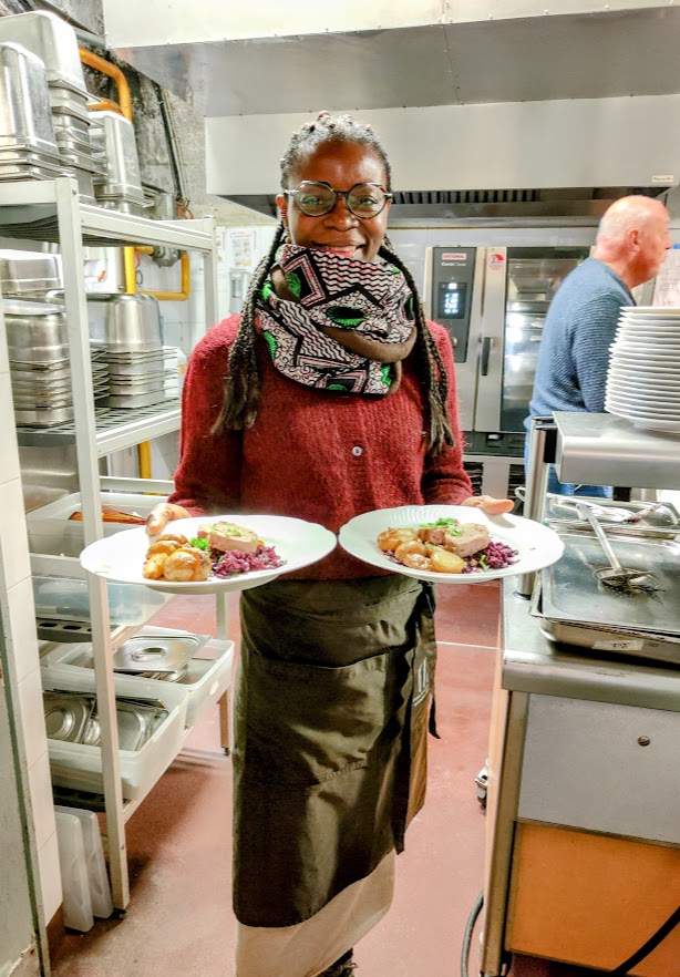 C’est là qu’une équipe de bénévoles (120 bénévoles* et 5 salariés à plein temps) propose un déjeuner complet, équilibré, sain et chaleureux (pas de produits transformés). Victoire, la jeune chef aime à dire (c’est son mantra) : “manger saison, manger maison, manger français”). Sauf qu’elle et son équipe proposent également des repas à thème, à la Saint Patrick, crêpes à la chandeleur, menu spécial noël ou bien mexicain, indien, vietnamien, chinois, italien, turque, africain…La cuisine du monde est donc aussi au rendez-vous :“je veux ouvrir le goût de mes convives aux épices” dit-elle.
